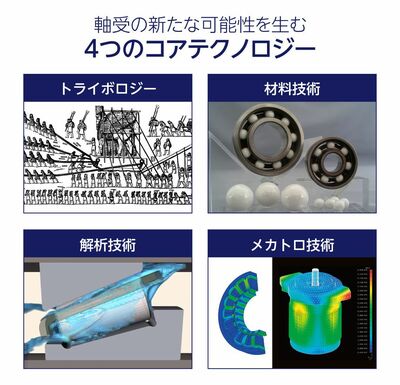 このうち「メカトロ技術」は、同じ自動車部品でも電動パワーステアリングシステム(EPS)のような複合製品の開発で重要な技術であり、軸受の開発・製造にとって重要なのは、「トライボロジー」「材料技術」「解析技術」の3つです。当社は、生産こそしていませんが軸受の材料となる特殊鋼や油などを、独自で開発・解析する環境を整えています。つまり軸受メーカーでありながら、材料や素材へのニーズ・シーズを社内に有しているため、高品質な製品を、早い開発サイクルで提供できるという強みがあるのです。