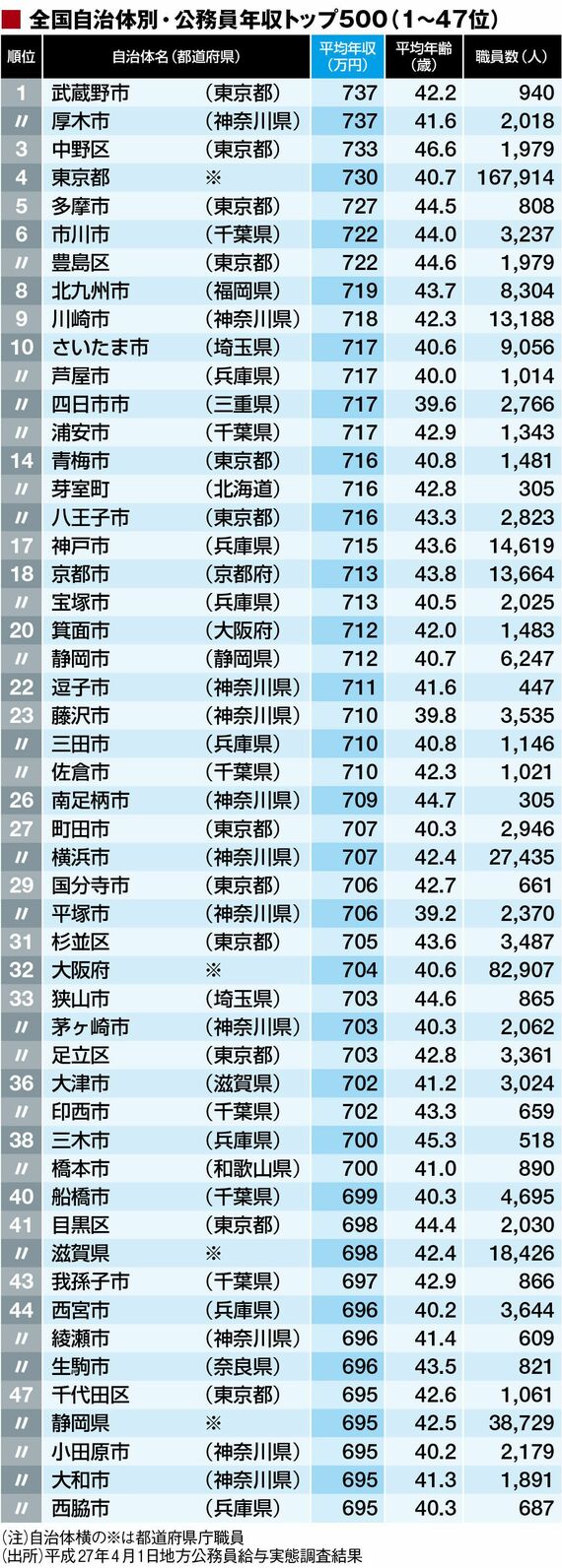 政治・経済・投資 #賃金・生涯給料ランキング 前の記事 次の記事 最新!「公務員の年収が高い自治体」トップ500 武蔵野市がトップ、39自治体が700万円以上 2分で読める 公開日時:2017/04/26 04:30 東洋経済オンライン編集部 フォロー 1/11 PAGES 2/11 PAGES 次ページが続きます:【51~100位は?】 3/11 PAGES 4/11 PAGES 5/11 PAGES 6/11 PAGES 7/11 PAGES 8/11 PAGES 9/11 PAGES 10/11 PAGES 11/11 PAGES