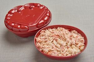 一目で「越前かにめし」と分かることにこだわったパッケージは、発売当初は茶色の陶器だったが、昭和後期に赤いプラスチック容器となり、その後も何度かの改良を重ねている。 その場で食べるのも良いが、持ち帰り電子レンジで温めると、香りが引き立ち一段と美味しいという。旅の思い出に「越前かにめし」をお土産に、自宅で福井の旅の余韻を味わうのもよさそうだ。