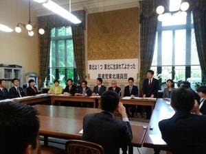 その後、彼らは今村氏の事務所を訪れ、今村氏に議員辞職と被災地でのお詫び行脚を求める「抗議文」を渡した。今村氏は不在だったが、秘書は神妙な表情でこれを受け取っている。