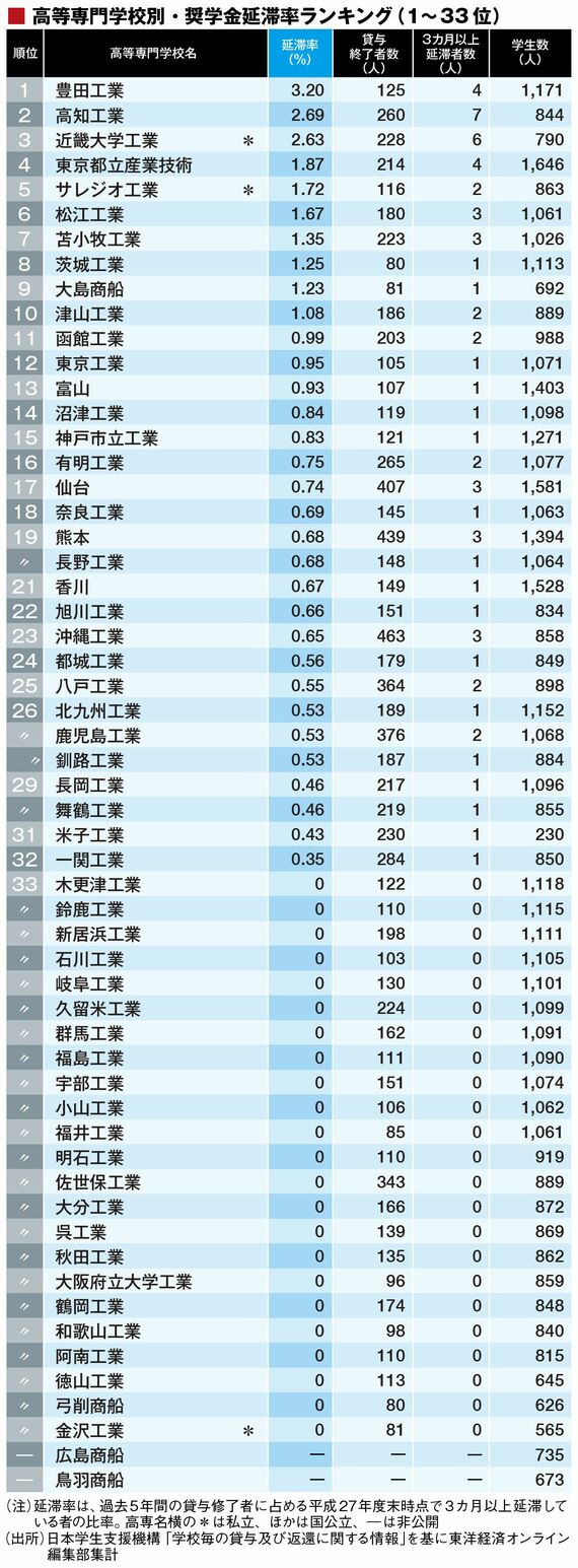 キャリア・教育 #奨学金制度はどうあるべきか 前の記事 次の記事 高専vs大学「奨学金延滞率」の違いは衝撃的だ 集計!全高等専門学校の延滞率ランキング 3分で読める 公開日時:2017/04/28 06:00 関田 真也 東洋経済オンライン編集部 フォロー 1/2 PAGES 2/2 PAGES
