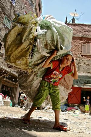 このマンシェイヤの奥に「カイロ中のゴミが集まる」といわれる場所がある。足を踏み入れればすぐにわかる。あらゆる種類の膨大なゴミが収集車に乗せられ出入りし、ゴミに埋まるように街がある。ただし、それぞれのゴミは金属、プラスチック、生ゴミに至るまで、この街の人々によって分別され、再利用と現金化される。ここはいわば高度なリサイクルエリアなのだ。