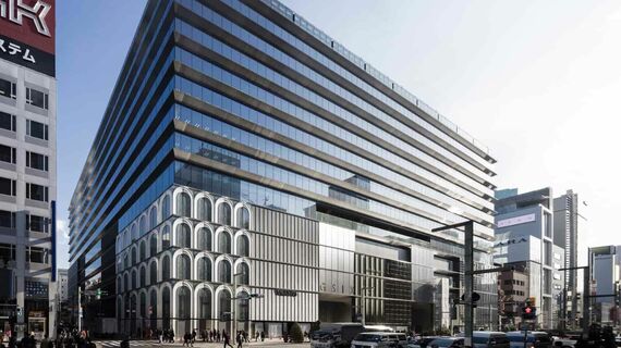 銀座6丁目の松坂屋銀座店の跡地を含めた2つの街区、約1.4ヘクタールを一体的に整備した再開発事業と、銀座エリア最大級となる複合施設の名称。地上13階、地下6階の建物内には、商業施設に加え、1フロアの貸室面積約6100㎡という都内最大級のオフィス、文化・交流施設、屋上庭園が備わっている。241店舗の商業フロアは、半数以上の121店舗が旗艦店。地下3階には、能楽の最大流派である観世流の拠点「観世能楽堂」が松濤から移転した。施設中央にある吹き抜け空間に設置された草間彌生の新作インスタレーション「南瓜」など、森美術館監修によるパブリックアートが展示されている。