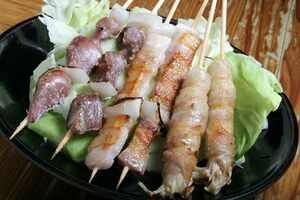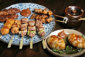 たとえば江東区住吉や新宿野村ビルにある「ひびき庵」は、埼玉県東松山市のご当地焼き鳥である、豚を串に刺して、みそダレで味わう「東松山やきとり」が看板商品で、埼玉の高級豚「彩の国 黒豚」の串や「特撰かしら串」などを提供している。また、下北沢の「和楽互尊」に至っては、平成元年の創業ゆえ、もう27年の歴史を誇る。こちらは博多焼き鳥を標榜する店舗。久留米をルーツとする博多焼き鳥は鶏に限らず、串に刺したらなんでも焼き鳥。それを酢じょうゆのかかったキャベツの上に置いていくスタイルだ。