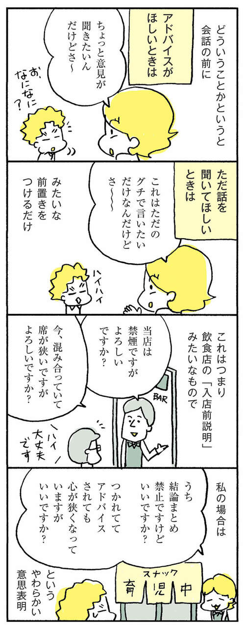 ライフ #ほしいのは「つかれない家族」 前の記事 次の記事 夫婦で「会話するだけで疲れる」根本的な原因 「なぜこんな事態に?」を漫画で検証 2分で読める 公開日時:2017/06/16 08:00 ハラユキ イラストレーター、コミックエッセイスト フォロー 1/7 PAGES 2/7 PAGES 3/7 PAGES 4/7 PAGES 会話の前に「入店前説明」をつける 次ページが続きます:【話がスムーズになった】 5/7 PAGES 6/7 PAGES 7/7 PAGES
