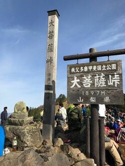 大菩薩峠に到着したのは6時45分。われながらなかなかのペースである。峠には山荘があり、軽食や飲み物を買える。売店は長蛇の列だ。そこでカップラーメンを食べるのが「お約束」なのだそうだ。私は持参したカロリーメイトをほおばった。