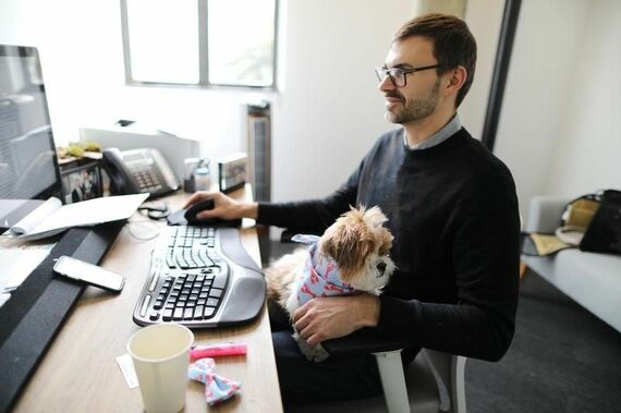 女性の服やアクセサリーの転売サイトを運営するTradesy社でも、職場での飼い犬同伴を奨励している。さまざまな犬種が会議に同席したり、机の下にいたり、膝に乗せて仕事をする女性もいる。