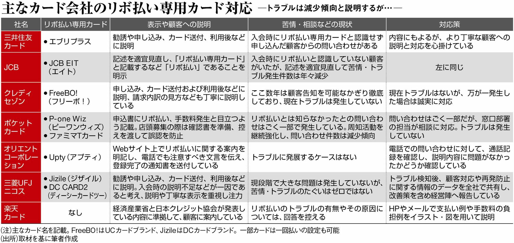 大手各社はリボ払い専用カード入会の際、勧誘時や申し込み、カード送付および利用後など、ことあるごとに説明をしていると異口同音に語る。