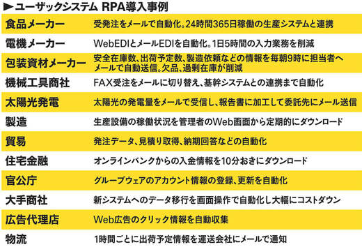 「Autoブラウザ名人」を開発・販売しているのは、長年、受発注や物流業務システムを手がけてきたユーザックシステムだ。同社は15年ほど前から業務の自動化ソフトに力を入れており、ブラウザ操作自動化ソフトの「Autoブラウザ名人」、メール操作自動化ソフト「Autoメール名人」などのRPAソリューションはすでに600社以上で活用されている。導入企業も、メーカー、商社、サービス、金融、官公庁と多種多様だ。