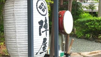 知子さんが嫁いだのは、神奈川県秦野市にある温泉郷、鶴巻温泉にある老舗温泉旅館の「元湯陣屋」。その門をくぐって中に入ると、目の前に広がるのは、手入れの行き届いた日本庭園。その敷地は、およそ1万坪もある。