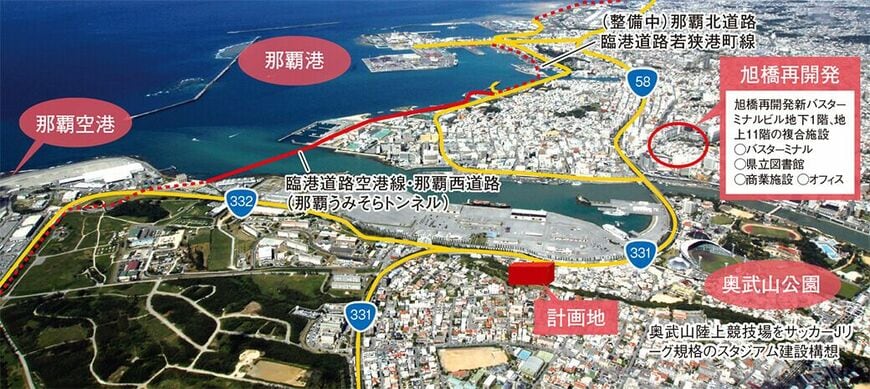 「(仮称)ミオビエント山下」の周辺には、1年を通して多彩なイベントが開催される奥武山公園があり、レクリエーションや散策にも格好のロケーションとなっている。