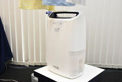 本機はオイルヒーターやコーヒーメーカーなどで有名なデロンギが、生活家電として初めて日本市場に送り込んだモデルだ。こちらもシャープのCV-G71と同様、幅335×奥行き225mmとかなりコンパクトで、定格除湿能力は6.5L/7.2L/日とシャープより若干高い。