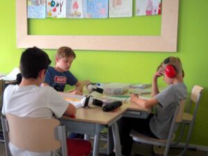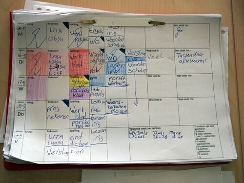 教師は何をするのか。イエナプランでは、教師が黒板の前に立って(そもそも教室に黒板がない)、大声を発するといった場面を目にすることがない。子どもたちが各自の課題に取り組んでいる間を静かに歩き回り、時に小さな声で言葉をかけたり、子どもたちから個別に寄せられる質問に答えたりする。日本の学校における教師が「教える人」ならば、イエナプラン教育における教師は、子どもたちの学びを「サポートする人」という位置づけであるように感じた。