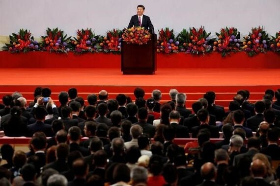 中国習国家主席、「いかなる挑戦も容認せず」 香港の記念式典で演説