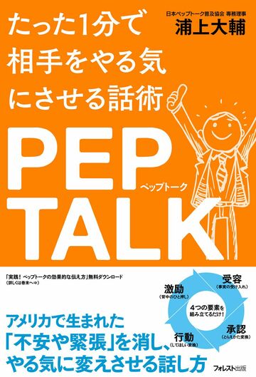 『たった1分で相手をやる気にさせる話術 PEP TALK(ペップトーク)』(フォレスト出版)。書影をクリックするとアマゾンのサイトにジャンプします