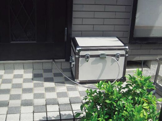 ボックスとワイヤーで接続した独自開発の「繋止錠」を玄関扉に挟むだけで利用可能。宅配後のボックスの開錠も繋止錠のフックを押して行うため、ボックスの鍵を管理する必要がありません。ボックス表面には耐火加工が施されています。