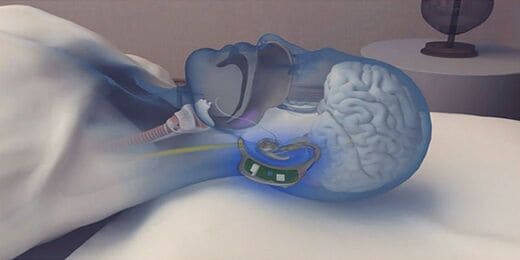 耳にかけて使用するいびき防止デバイス。いびき中に起こる音や振動を独自の骨伝導と音認識によって捉えると、のどの筋肉の緩みを引き締め、気道を確保してスムーズな呼吸を促してくれます。