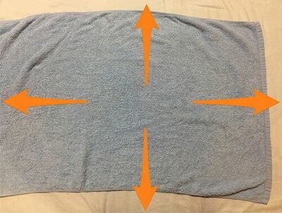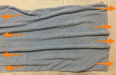 ほぼ一瞬で綺麗にしわが伸びました!一目瞭然ですね!このタオルの例は、肩、首をおおう筋膜も同様なのです。タオルのしわは、体でいうと、歪みにあたります。首や肩にコリを感じる時、筋肉を覆っている筋膜のある部分が縮み、しわのように周りが引っ張られ、緊張が生じているのです。