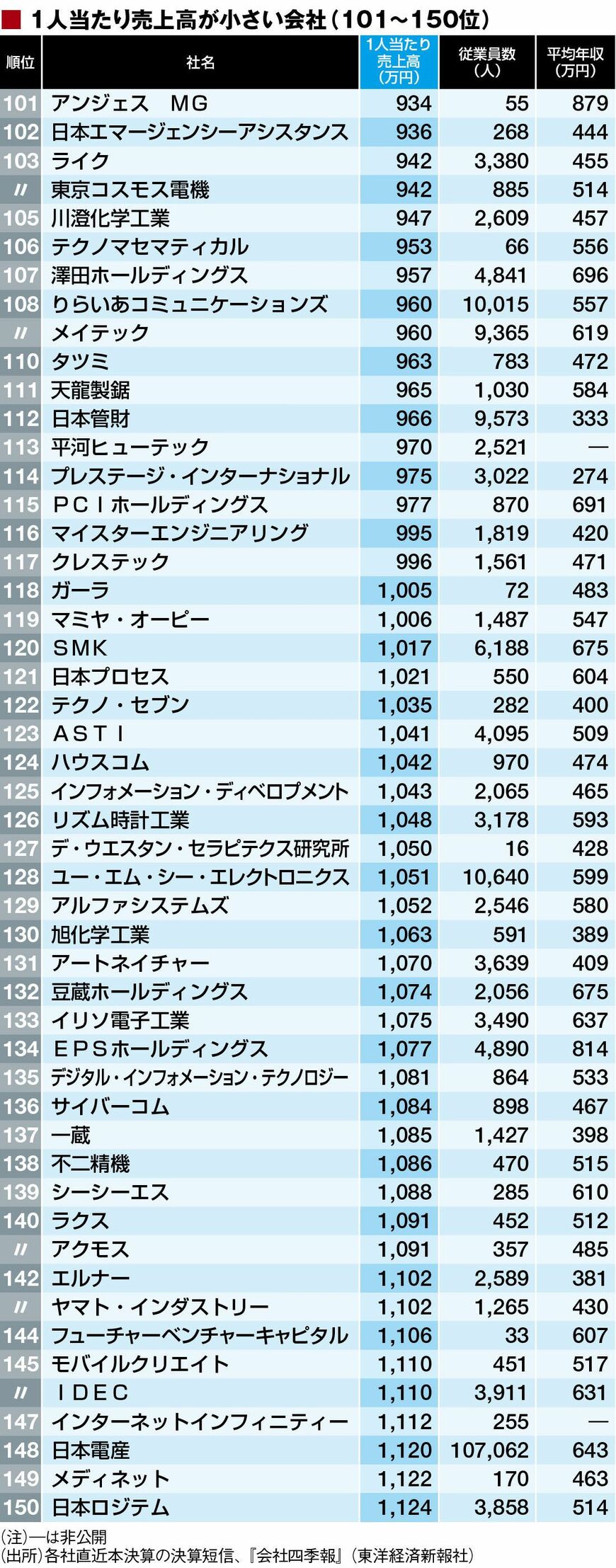 政治・経済・投資 「1人当たり売上高」ワースト500社ランキング 100万円未満が2社、11位まで平均年収下回る 3分で読める 公開日時:2017/07/25 06:00 東洋経済オンライン編集部 フォロー 1/11 PAGES 2/11 PAGES 3/11 PAGES 4/11 PAGES 次ページが続きます:【151~200位は?】 5/11 PAGES 6/11 PAGES 7/11 PAGES 8/11 PAGES 9/11 PAGES 10/11 PAGES 11/11 PAGES