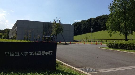 上越・北陸新幹線「本庄早稲田駅」を出るとそこはすでに早稲田大学本庄キャンパスの敷地である。高校は通称「大久保山」と呼ばれる緑深い丘陵地帯の中にある。高校に向けて歩き出すとすぐに「まむしに注意」の立て看板が目にとまる。校地面積は東京ドーム約15個分、東京ディズニーランドの約1.6倍。毎日が林間学校のような学校だ。