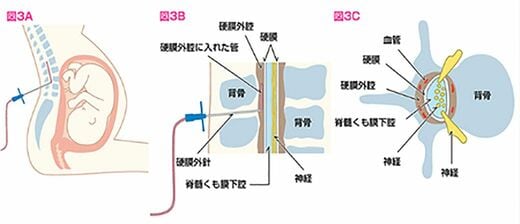 無痛分娩にはいくつかの方法があるが、そのひとつが硬膜外麻酔(下の図参照)。脊髄の近くに薬を投与し、痛みを和らげる方法だ。気をつけなければいけないのは硬膜を破り、その奥のくも膜下に針が到達したときだ。くも膜下腔に麻酔が誤注入されると効きが強すぎて、妊婦は急速に意識をなくし、処置が遅れれば呼吸停止、心停止に至る。