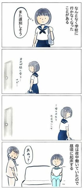学校に行かなかった数日間を描いたマンガが7月26日、Twitterに投稿され、半日後には5万いいねを超えるなど反響を呼んでいる。