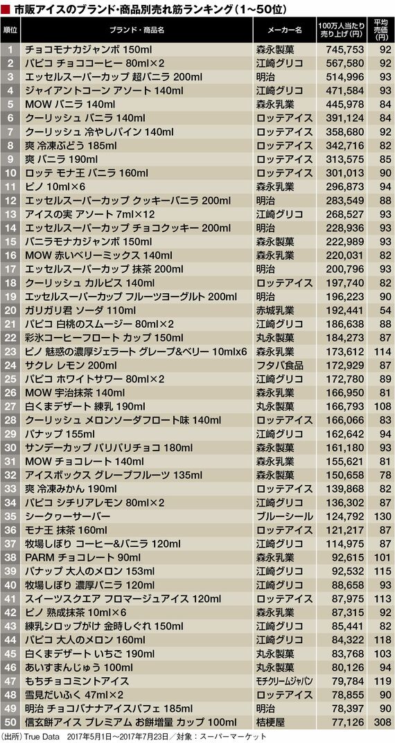 ライフ #世界の(ショーバイ)商売見聞録 前の記事 次の記事 売れ筋「アイス」トップ100商品ランキング ガリガリ君が意外な結果、1位はあのモナカ 4分で読める 公開日時:2017/08/05 05:00 坂口 孝則 未来調達研究所 フォロー 1/3 PAGES 2/3 PAGES 次ページが続きます:【続いて51~100位】 3/3 PAGES