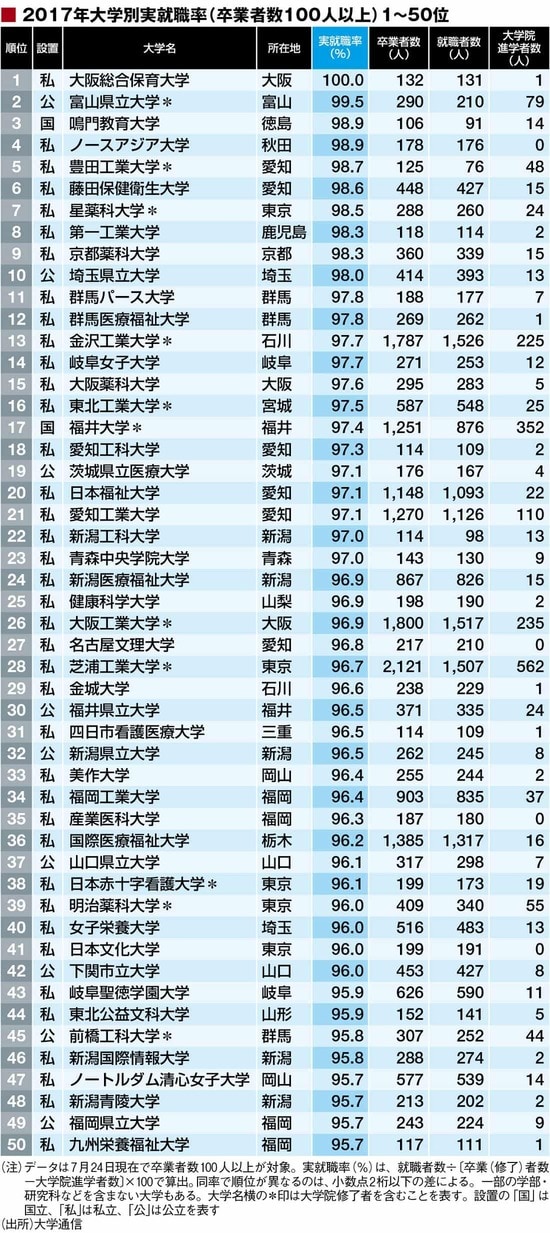 キャリア・教育 #就職四季報プラスワン 前の記事 次の記事 最新!就職に強い大学ランキングトップ300 「実就職率」が高い金沢工大、福井大、芝浦工大 7分で読める 公開日時:2017/08/04 05:00 安田 賢治 大学通信 常務取締役 情報調査・編集部ゼネラルマネージャー フォロー 1/9 PAGES 2/9 PAGES 3/9 PAGES 4/9 PAGES 次ページが続きます:【実就職率ランキング51~100位】 5/9 PAGES 6/9 PAGES 7/9 PAGES 8/9 PAGES 9/9 PAGES