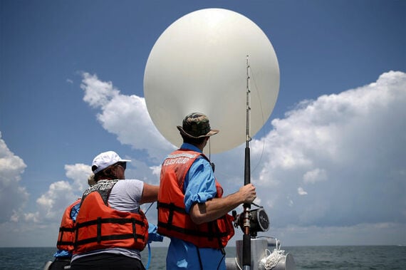 リュニョン氏率いる教授と学生のチームは、米国大陸で最後の通過点となるチャールストンの東岸9─11キロ沖合で、沿岸警備隊の船舶から風船を打ち上げる計画。