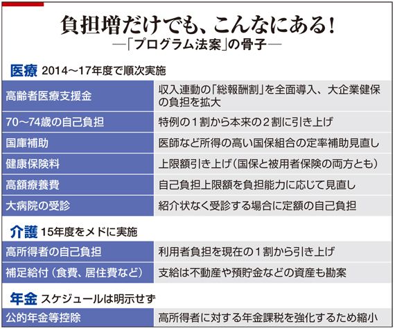 要するに、超高齢社会に合わせて医療・介護のあり方を変えるということだ。これは08年、福田・麻生政権時代の国民会議で青写真が示されながらも、一向に進まなかった5年越しのテーマ。その意味で医療・介護提供体制の再編こそが、今回の改革の目玉といえる。