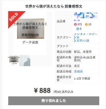 いずれも出品されている読書感想文はワードなどで作成されたもの。購入者が手書きで書き直せば、そのまま提出できるようになっているようだ。