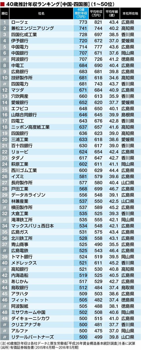 マーケット #賃金・生涯給料ランキング 前の記事 次の記事 40歳年収「地方に本社置く296社」ランキング 3分で読める 公開日時:2017/08/31 05:00 東洋経済オンライン編集部 フォロー 1/7 PAGES 2/7 PAGES 3/7 PAGES 4/7 PAGES 次ページが続きます:【続いて中国・四国地方51~105位】 5/7 PAGES 6/7 PAGES 7/7 PAGES