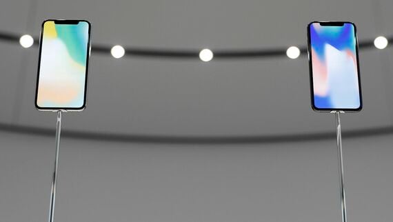 アイフォーン10周年記念モデルとなる「X」は、画面下にあったホームボタンがなくなり、画面は前面をほぼ覆いつくす5.8インチとなったほか、有機EL(OLED)を採用。さらに、指紋ではなく顔認証に対応するほか、無線充電や赤外線カメラといった新機能を搭載する。