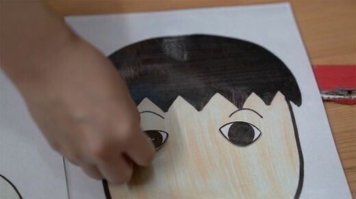たとえば、顔のパーツを並べて遊ぶ手作りの「福笑い」。身体機能や空間の把握を学ぶ課題に大活躍。