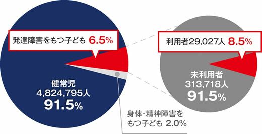 専門的なサポートが大きな助けになる一方、必要な人に支援ができていないのが現状です。現在日本では、6.5%の子ども、すなわち約30万人の子どもが発達障害があると言われています。そのうち専門的なサポートを受けられているのは1割ほどでしかないといいます。