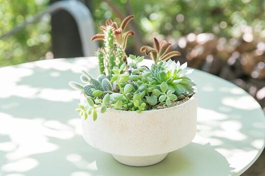 土を盛りながら植物の角度などを微調整し、いよいよ完成! 小ぶりな多肉植物のバランスがちょうどいい鉢植えが出来上がった。日の当たる窓際に何気なく置けば、そこが癒やしの空間になりそうだ。