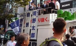 翌9日には銀座4丁目交差点で、河野太郎外相と小野寺五典防衛相による共同街宣「みんなで考えようニッポンの平和」が行われた。その前々日、希望の党の小池代表が日本維新の会の松井一郎代表や河村たかし名古屋市長とともに演説したのと同じ場所だ(正確にいえば、晴海通りを挟んで反対側になる)。