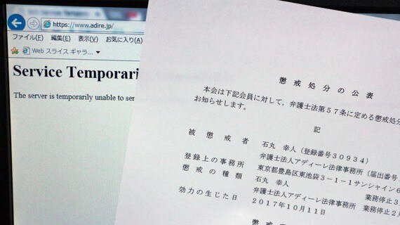 同時に同事務所の創設者で、元代表の石丸幸人弁護士も個人で業務停止処分を受けており、期間は弁護士法人よりも長い3カ月となった。
