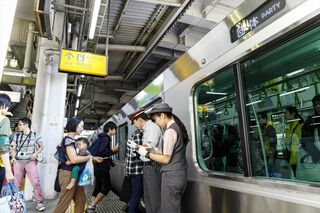 綱嶋さんは、最後尾の11両目から車内放送で参加者に呼びかける。確かにその言葉のとおり、ホームで電車を待つ人たちは呆気にとられた表情。手を振り返してくれたのは、外国人観光客とおぼしきグループくらいなものだった。