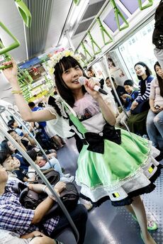 車内でのイベントはこれだけではない。鉄道アイドル・白雪ありあさんが先頭の1号車側から最後尾に向かって練り歩きながらのリサイタル。さらに女子プロレス団体「アイスリボン」のメンバーが見せる前代未聞の”山手線プロレス”には参加者たちもやんやの喝采だ。