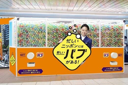 また、バブでは忙しい現代人を応援する“巨大バブサーバー”を全国5大都市(※)に設置。レバーを回すと新しいバブ1包が当たるほか、金のカプセルが出た場合には、イメージキャラクターを務める阿部サダヲさんのオリジナルグッズ「お風呂のバブサダヲ」が当たります。