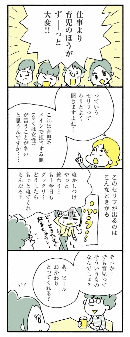 そんなふうに「つかれる家族」と「つかれない家族」を考察するこの連載。前々回から、家事育児分担問題を解決するための夫婦の話し合いについてお届けしていますが、今回はそんな話し合いの中で話題にのぼりがちな「育児と仕事どっちが大変か」がテーマです。自分の大変な状況を理解してもらえないとつかれも倍増するものですが、その状況を変えるにはどうしたらいいのでしょうか?