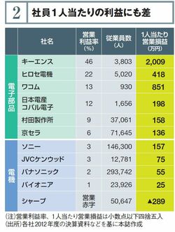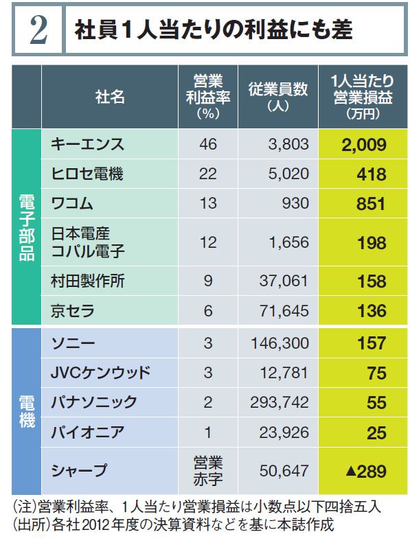 2012年度末時点の時価総額で比べても、売上高約1700億円のキーエンスが同7兆円前後のソニーやパナソニックを上回る。10年間の時価総額増加率に至っては、上位20位中19位までが電子部品関連だ。隣り合う業界で、なぜこれほどの差が開いたのか。