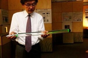 同じ構造を細くしたものが、小池教授の“息子”のひとり、世界最速のプラスチック光ファイバーだ。伝送速度は現在普及しているガラス製の光ファイバーをしのぐ。