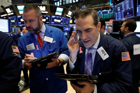 11月6日、米国株式市場は主要株価指数が最高値を更新して取引を終えた。写真はNY証券取引所のトレーダー、1日撮影(2017年 ロイター/Lucas Jackson)