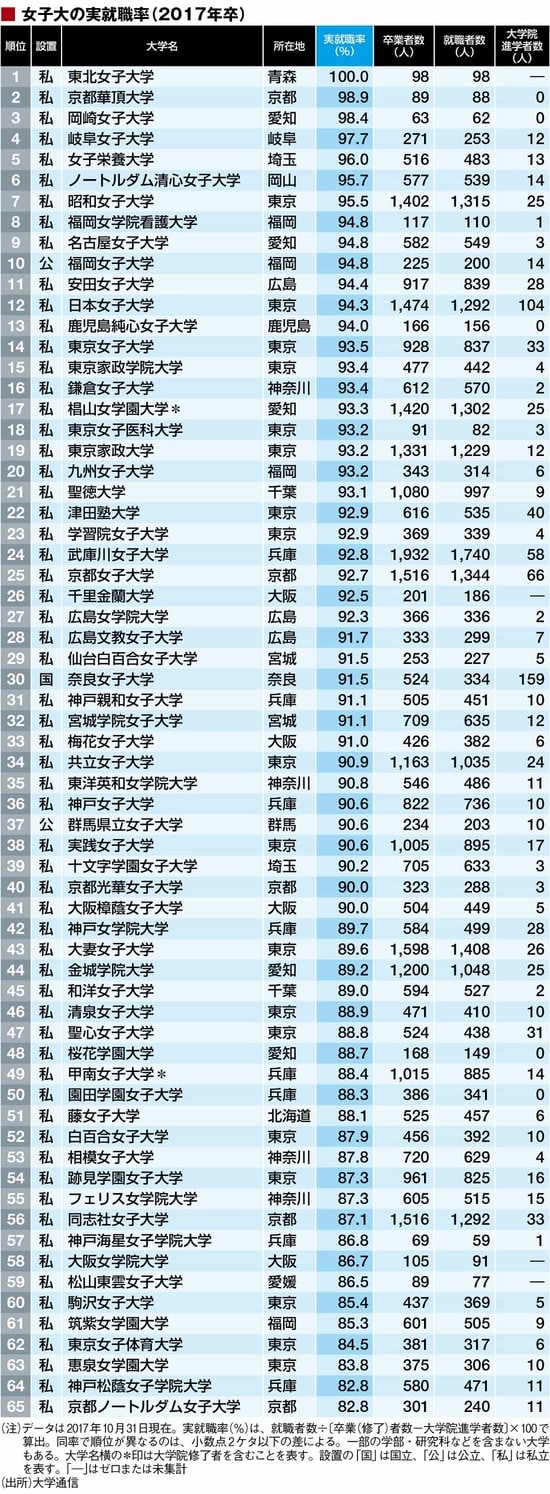 キャリア・教育 #就職四季報プラスワン 前の記事 次の記事 「就職に強い女子大学」トップ65ランキング 全体1位は東北女子、有名企業なら東京女子 6分で読める 公開日時:2017/11/10 06:00 井沢 秀 大学通信 取締役情報調査・編集部部長 フォロー 1/5 PAGES 2/5 PAGES 3/5 PAGES 4/5 PAGES 次ページが続きます:【女子大の有名企業・実就職率ランキング】 5/5 PAGES