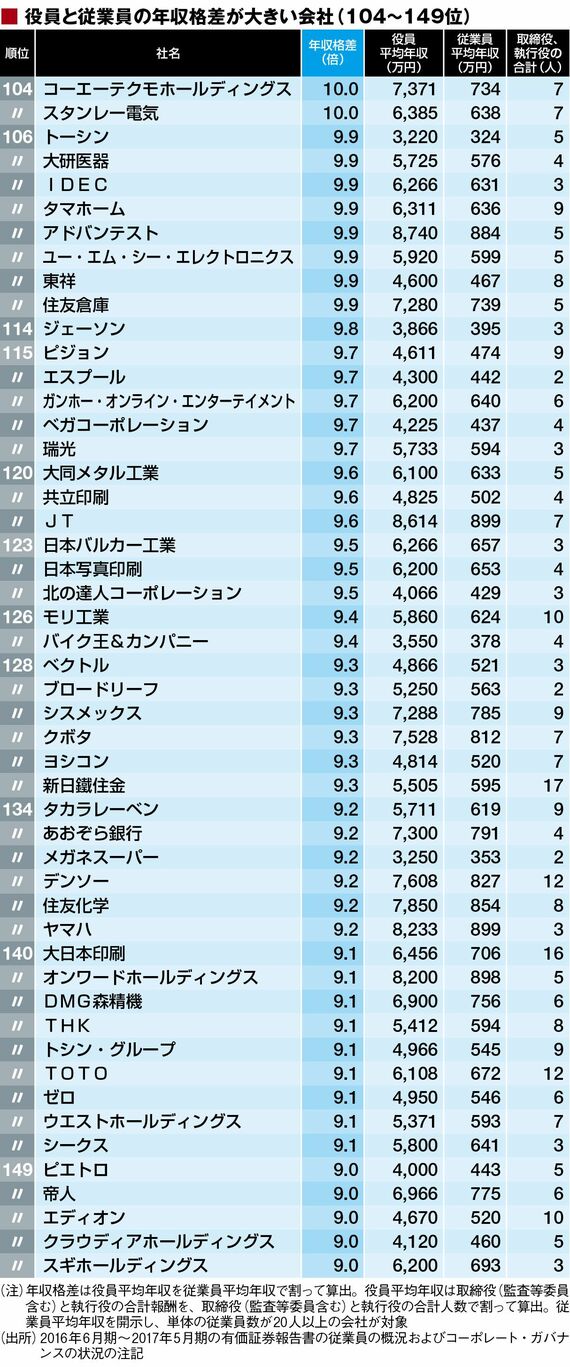 政治・経済・投資 #賃金・生涯給料ランキング 前の記事 次の記事 社員と役員の年収格差が大きいトップ500社 1位LINEは165倍!10倍以上は105社 4分で読める 公開日時:2017/11/24 06:00 田中 久貴 東洋経済データ事業局 フォロー 1/11 PAGES 2/11 PAGES 3/11 PAGES 4/11 PAGES 次ページが続きます:【151~200位は?】 5/11 PAGES 6/11 PAGES 7/11 PAGES 8/11 PAGES 9/11 PAGES 10/11 PAGES 11/11 PAGES