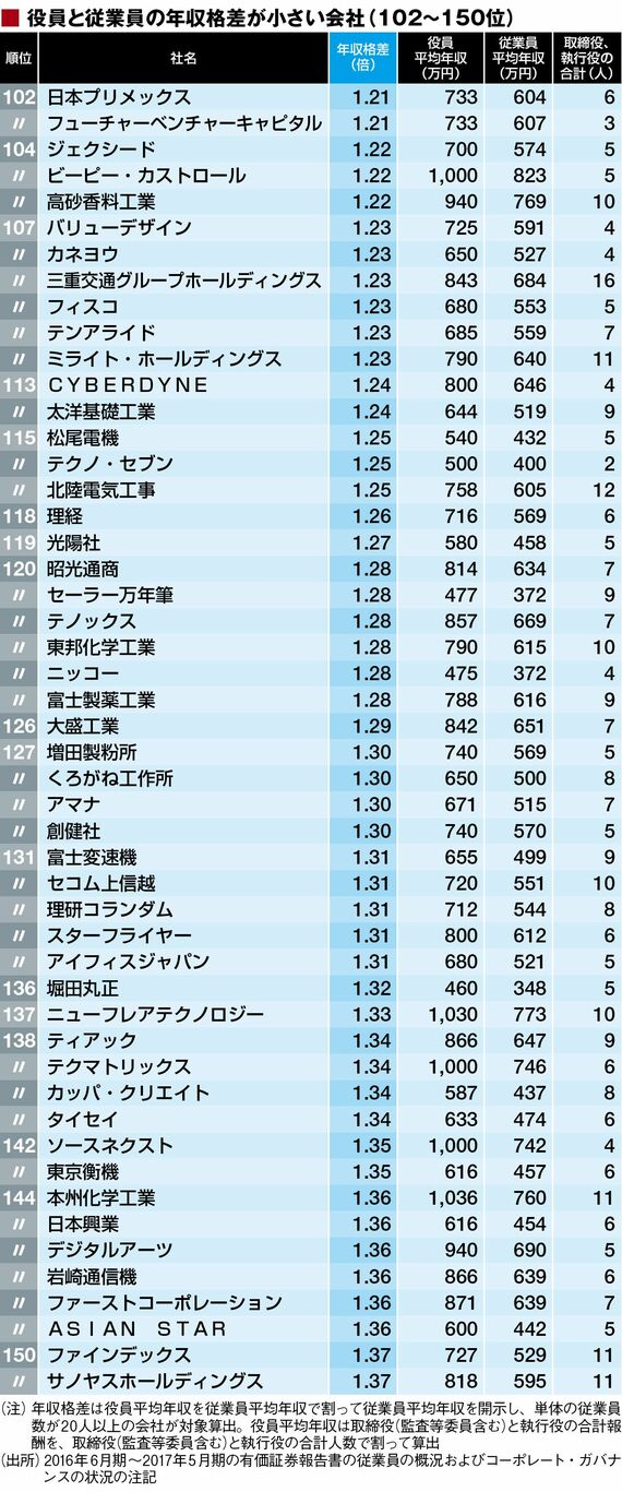 政治・経済・投資 #賃金・生涯給料ランキング 前の記事 次の記事 役員との年収格差が小さい500社ランキング 社員以下の報酬をもらう役員は53社 4分で読める 公開日時:2017/11/28 05:00 田中 久貴 東洋経済データ事業局 フォロー 1/11 PAGES 2/11 PAGES 3/11 PAGES 4/11 PAGES 次ページが続きます:【151~200位は?】 5/11 PAGES 6/11 PAGES 7/11 PAGES 8/11 PAGES 9/11 PAGES 10/11 PAGES 11/11 PAGES