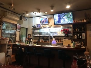 店内は多くの常連客で賑わっていた。8~10名が腰かけられるソファー席と、3名が座れるカウンター席がある。想像以上に広い。