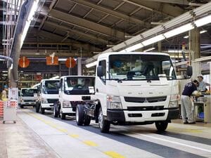 三菱ふそうは国内では川崎工場でトラックを製造、バスは富山工場で生産する。川崎工場では小型・中型・大型トラックを製造し、世界160カ国以上に輸出。約7割が完成車として国内外に出荷、約3割が部品などを世界14拠点の組立工場に送り、現地で最終組み立てされる。